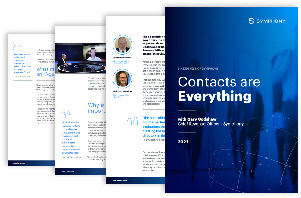 How Symphony is helping firms connect and contact the right people – reducing the number of missed trading opportunities, reducing errors and facilitating the resolution of trade exceptions.