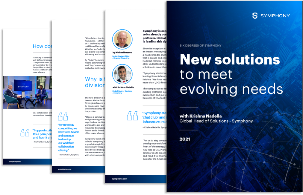 Download the in-depth interview discussing how the Symphony platform brings many efficiency benefits through automation, electronification, digitalization – for its customers, partners and the financial markets as a whole.
