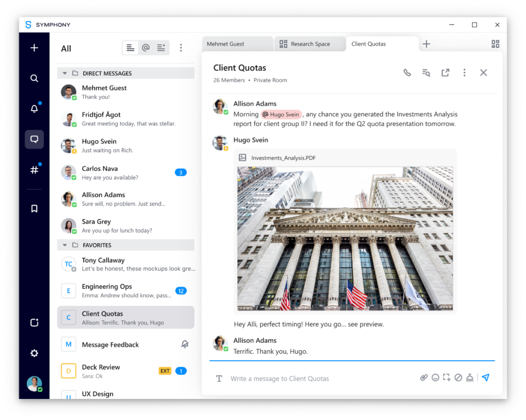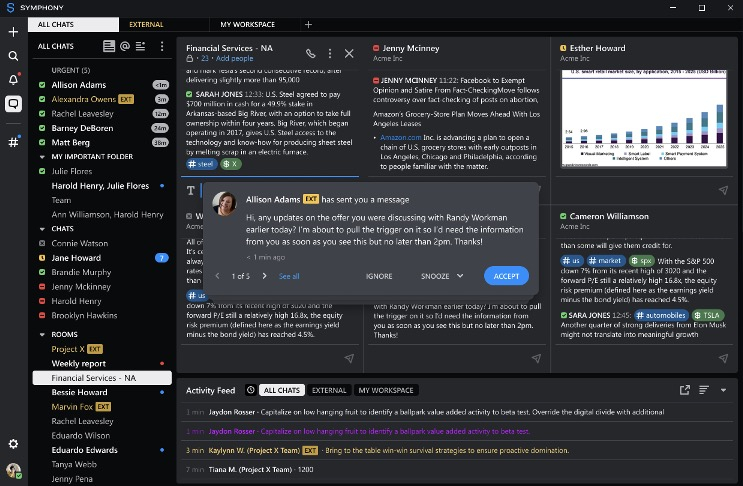 When we talk about Symphony 2.0, we emphasize that the product is purpose-built for financial services workflows. But even that is too simplistic – we recognize that within the industry, there is a wide variety of roles, responsibilities, needs and preferences. Investment bankers, research analysts, compliance professionals: all within financial services, but all with very different workflows.