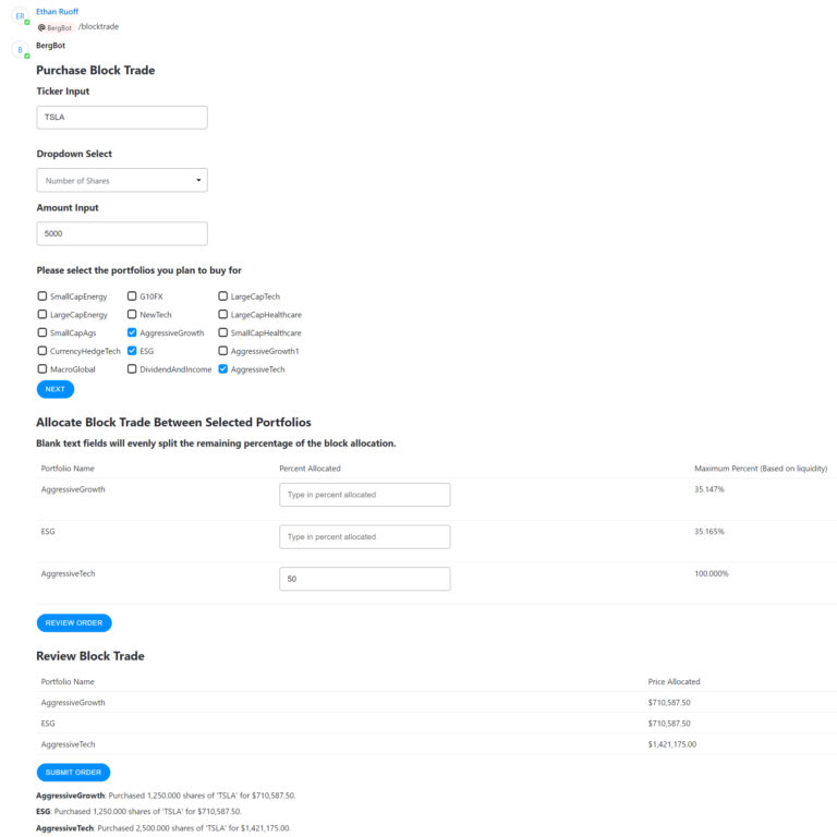 Portfolio Managers need to seamlessly allocate block trades to different client stock accounts under management.