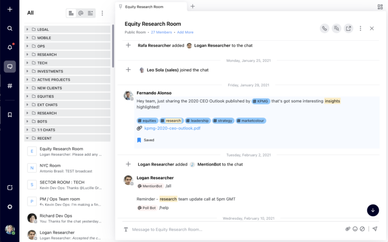 Although mentions and tagging are not new to Symphony 2.0, we wanted to take all of their power to another level. We’ve changed the color of your own mentions so they stand out in a chat, which you have already told us you love. For tagging – previously known as Signals – we wanted to make it easier than ever to follow, track, apply, and jump to tags. In Symphony 2.0 you can easily view and manage the tags you follow with fewer steps, but also leverage keywords, which allows you to track certain words without needing a tag at any time. Now, any time a tracked tag or keyword is posted, you can easily stay on top of the latest.